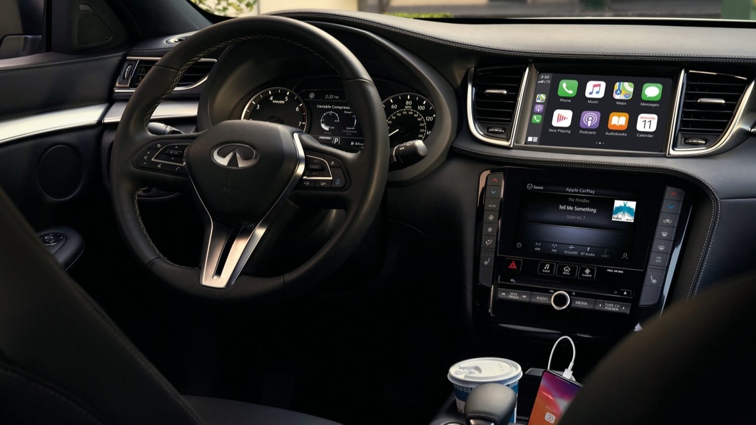 Apple CarPlay® — это умный и более безопасный способ пользоваться возможностями iPhone за рулем INFINITI QX50. Прокладывайте маршруты, отправляйте и получайте сообщения, говорите по телефону и слушайте любимую музыку, не отвлекаясь от дороги.
