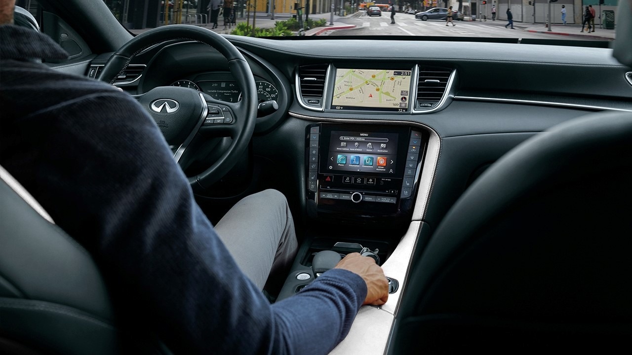 Оставайтесь на связи, где бы вы ни находились - INFINITI QX55 оснащен передовыми технологиями для развлечений и подключения.